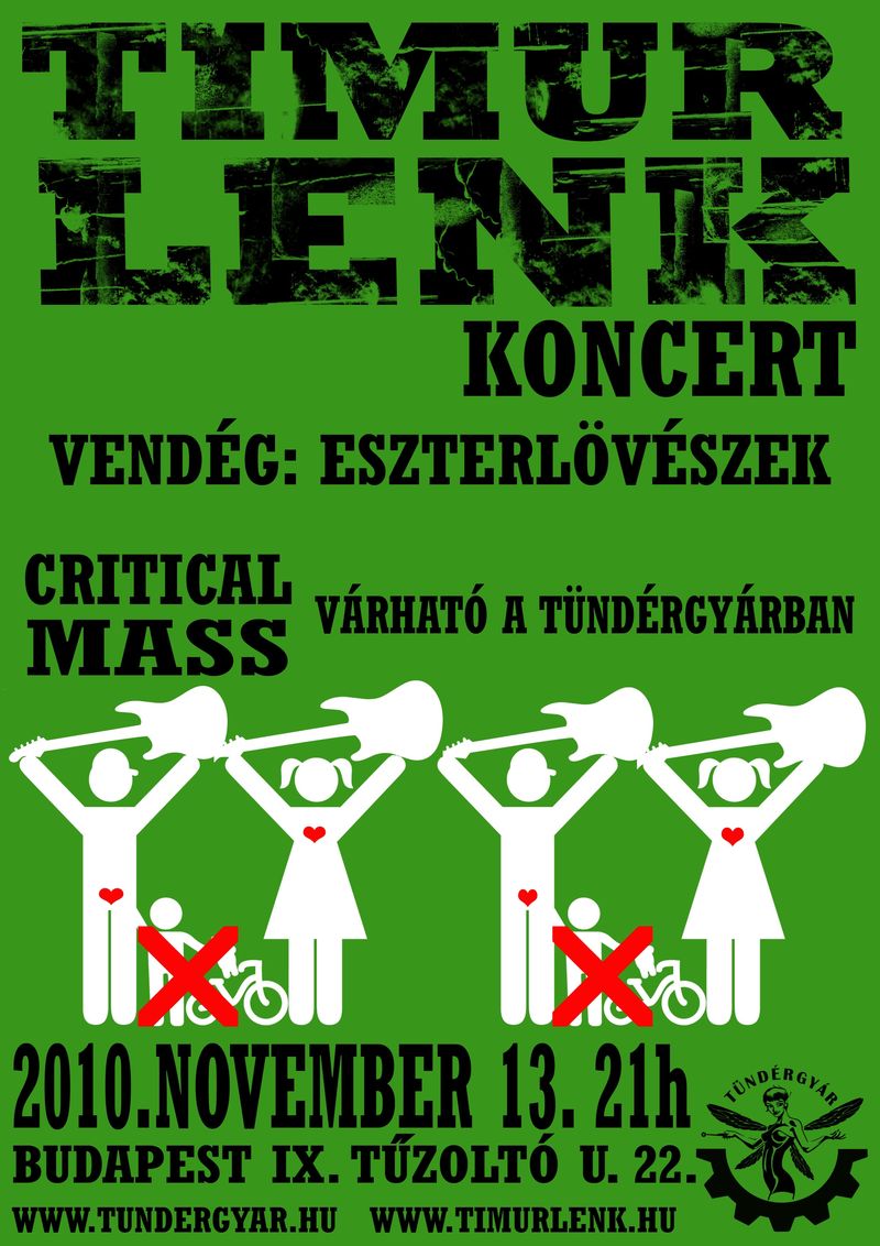 Irgalmatlan kavarodást követő kavarás után (hosszú és bonyolult történet, van benne salgópolc meg csőgörény) egy pici változás, nem itt, hanem ott, nem ezzel, hanem azzal, ami fent, az lent és viszont. A december 18.-i Timur Lenk koncert a Gödörből áthelyeződött a Zappába. Illetve ha már volt szó Einsteinről, úgy is mondhatjuk, hogy mi nem mozdultunk egy tapodtat sem, hanem valami furcsa tértorzulás miatt a Zappa helyeződött alánk, a Gödör meg elhelyeződött a picsába.