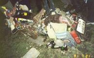 - A szétszakadt ülés hátsó részén hasonló bizbaszok felaggatva.